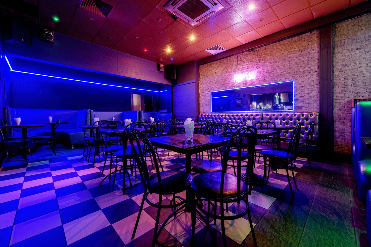 Недавно с друзьями посетили караоке бар мне понравилось можно и попеть поесть потанцевать персонал очень хороший да и цены довольно не плохие, но хорошие диджеи мы остались довольны да и еще работают до 8 утра